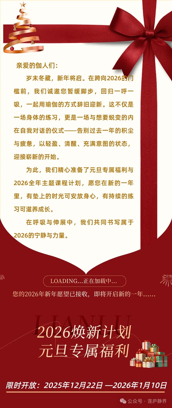 » 动态信息» 用Yoga开启2026:新年焕新计划|元旦专属福利 & 全年瑜伽与健康主题课程发布